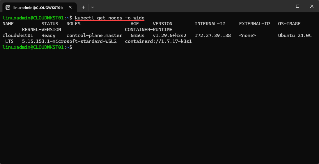 sudo chown -R linuxadmin k3s.yaml