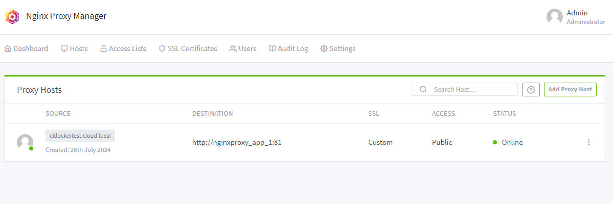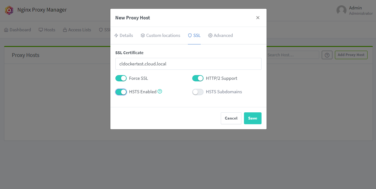 Now that we have a self-signed certificate, or a Let’s Encrypt certificate in place, we can now add a proxy host for the NPM host itself. Let’s see how we can add this proxy host.