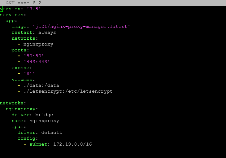 Below is the entire configuration, showing the networks configuration. This will ensure the only way traffic coming in can get to port 81 is through the NPM proxy host.