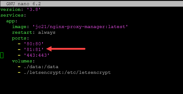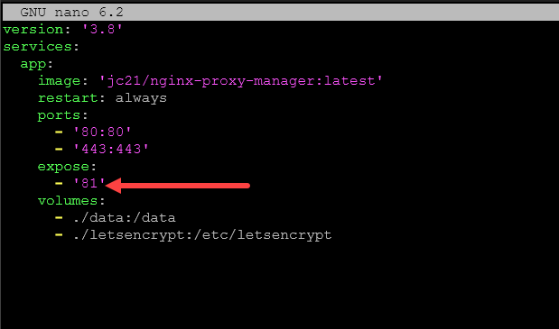 Now, we need to take the port configuration โ81:81โฒ out and then place it in the expose section as we have done below.