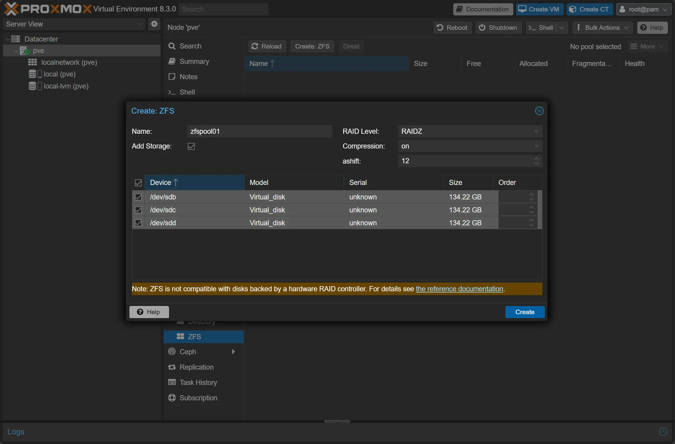 Create a ZFS Pool (if not already created)