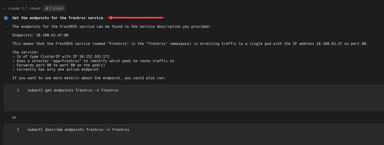 After running a few commands, it asked if I wanted to get the endpoints for the freshrss service.
