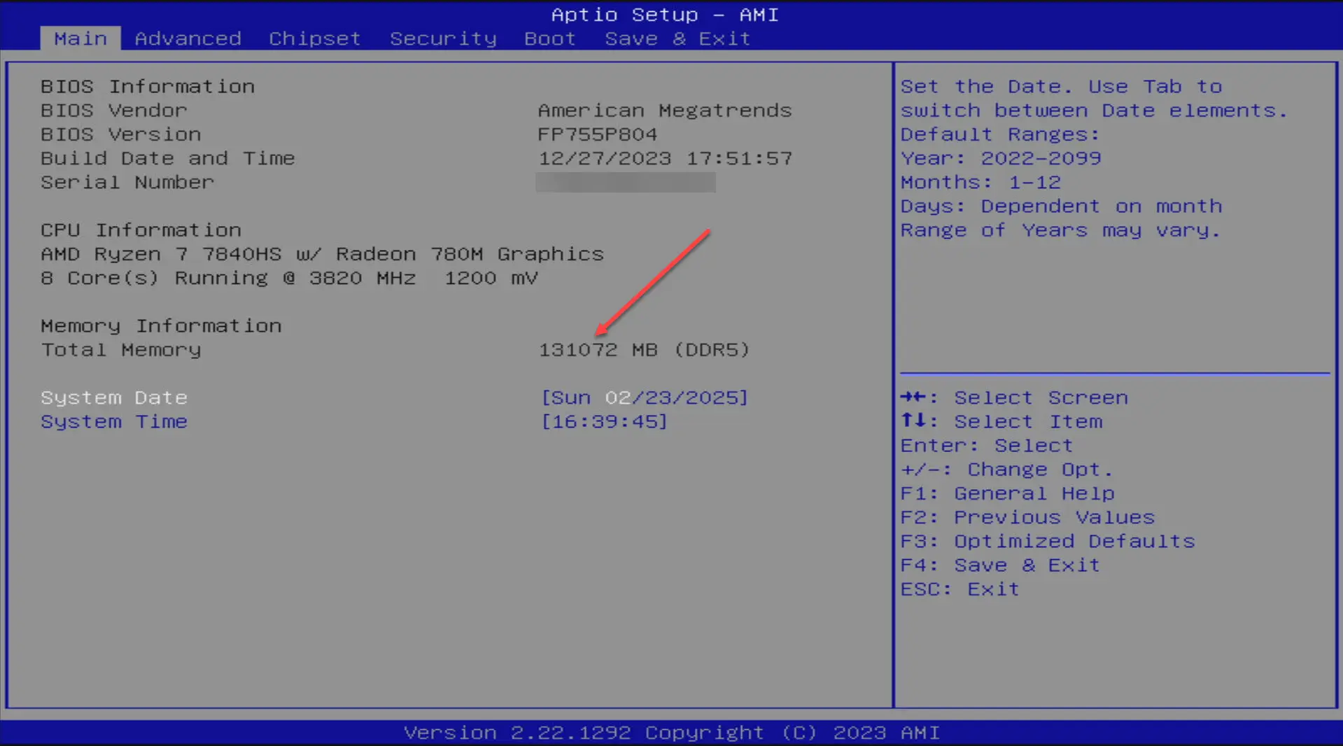 The Geekom AE7 is another little mini PC I reviewed last year that is a great little unit that contains the AMD Ryzen 9 7940HS processor with 16 threads so lots of processing power with it. It also has DDR5 memory. So, it is one that I was keen on testing with the new Crucial 128 GB RAM kit. When looking at the AE7, I had a drive that was already loaded up with Proxmox, installed the 128 GB RAM kit and, no issues getting it to see the 128 GB of RAM in Proxmox. You can see the output of free -m below in the screenshot.