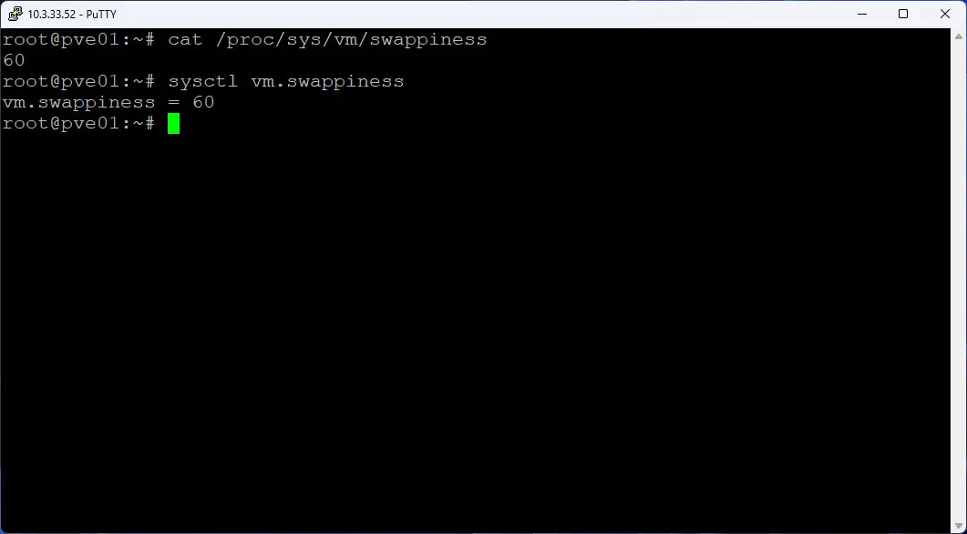 Now, let’s see how we configure the swappiness value. We can do this with the command: