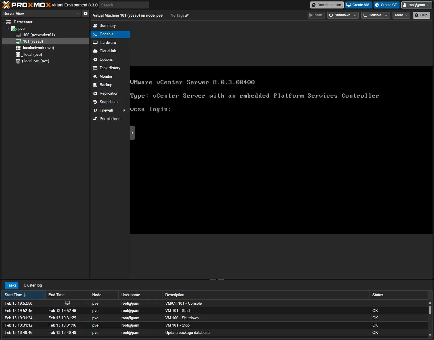 I am just following the default Veeam workflow for getting VMware virtual machines migrated to Proxmox. So, I decided to test this out on my home lab vCenter Server to see if Veeam would successfully be able to restore VCSA over to Proxmox. At the end of the day, the VCSA appliance is just another virtual machine running on Photon OS with VMXNet3 adapter for networking, which Proxmox understands.