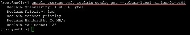 esxcli storage vmfs reclaim config get --volume-label <datastore>