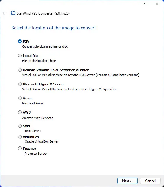 If you are wondering what StarWind V2V Converter is, it is a lightweight tool that allows you to perform disk conversions. This can be used for both physical machines and virtual machines. If you are migrating from VMware ESXi, Hyper-V, VirtualBox or now even Proxmox as well as cloud environments like AWS, Azure, etc.
