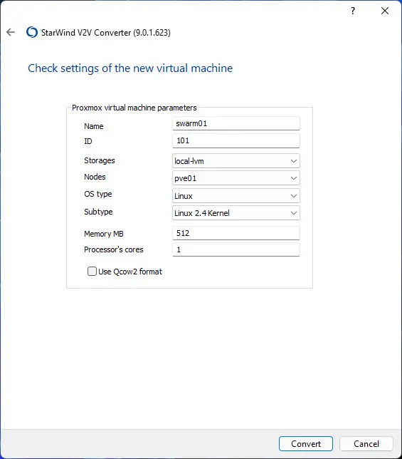 When converting a virtual machine to Proxmox VE using StarWind V2V Converter, the “Use QCOW2 format” checkbox determines the disk format of the converted VM. Here’s when you should or shouldn’t check it: