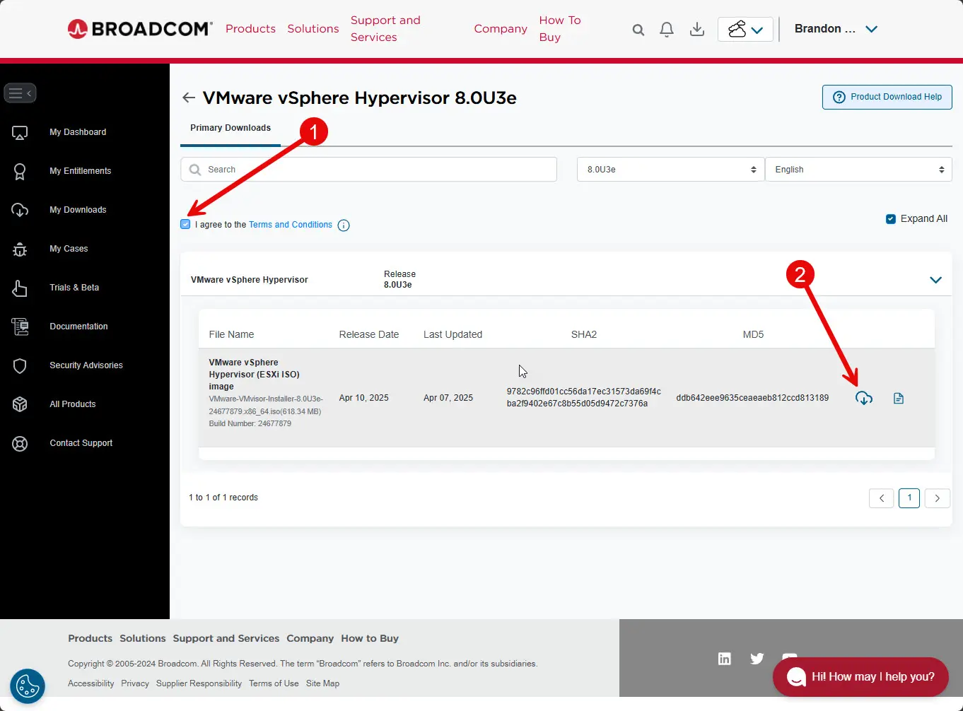 Ok, so let’s take a look at how to now download the new VMware ESXi free edition as of VMware 8.0 U3e version that was released on April 11, 2025. So, all you have to do is sign up for the Broadcom support portal which is free to do.