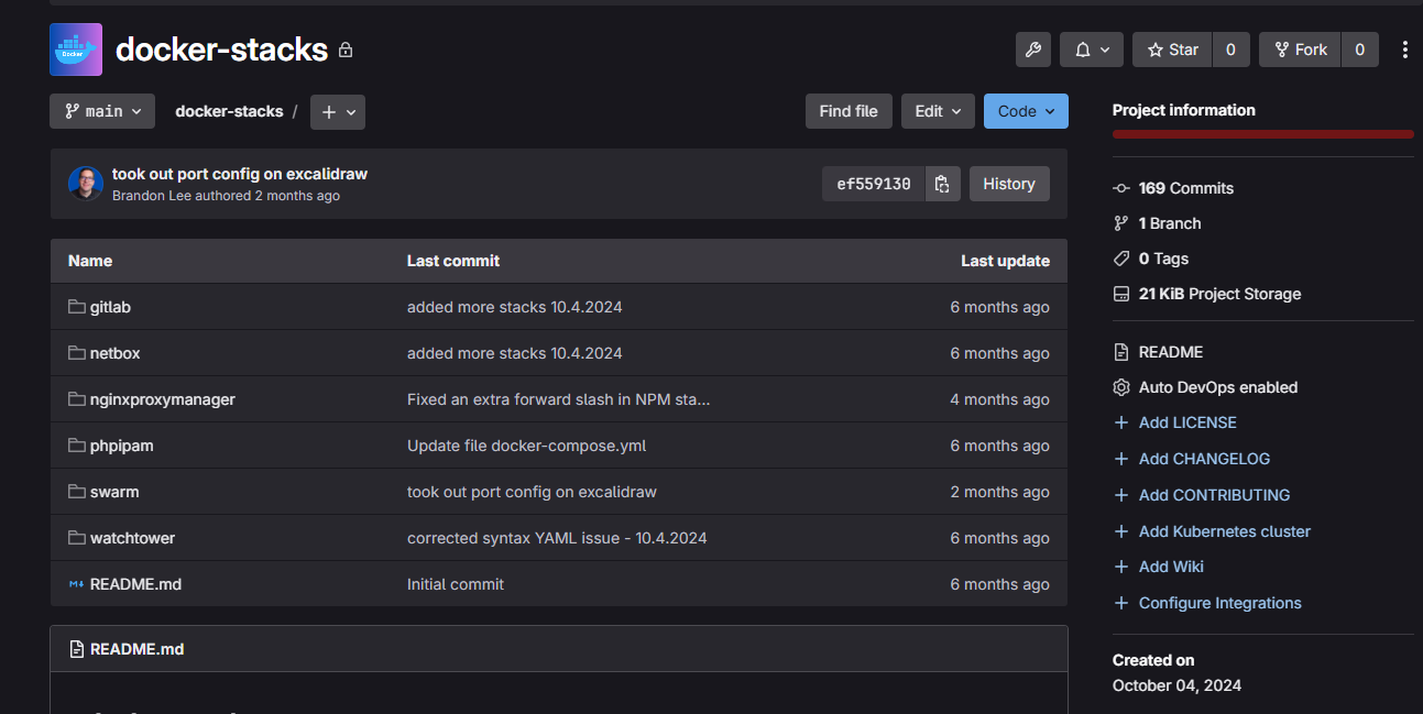 All of this lives inside a Git repository in something like GitLab which is what I use in the home lab. This gives me history of changes, rollback capability, and I can tag versions of code in my home lab setup. You can use things like branches to work on your code. If you have a pipeline enabled it can even roll out changes when you commit your code. Something like Portainer can also periodically check repos for changes and redeploy your containers when it finds an update.