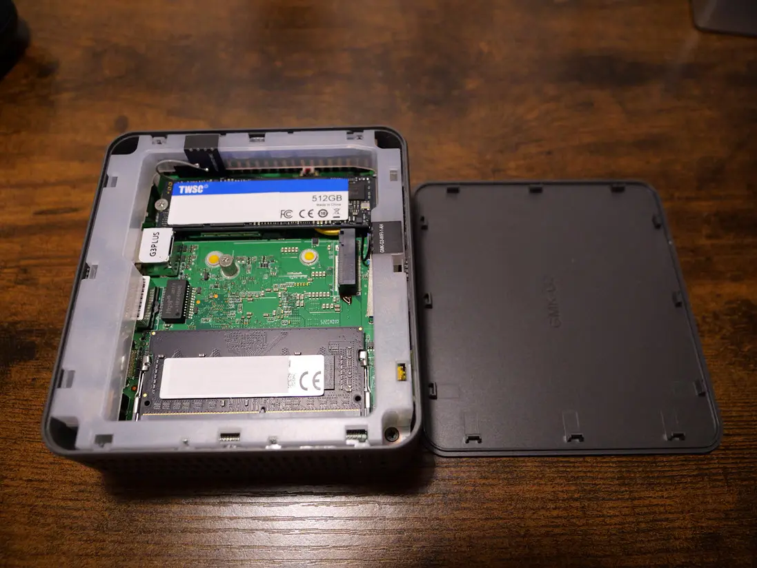 One thing I really like about this little mini PC is that it is easy to get into to upgrade either the NVMe, SATA SSD, or the RAM. The top cover just snaps onto the chassis. So you just pull this off by hand and it exposes the internals of the unit.