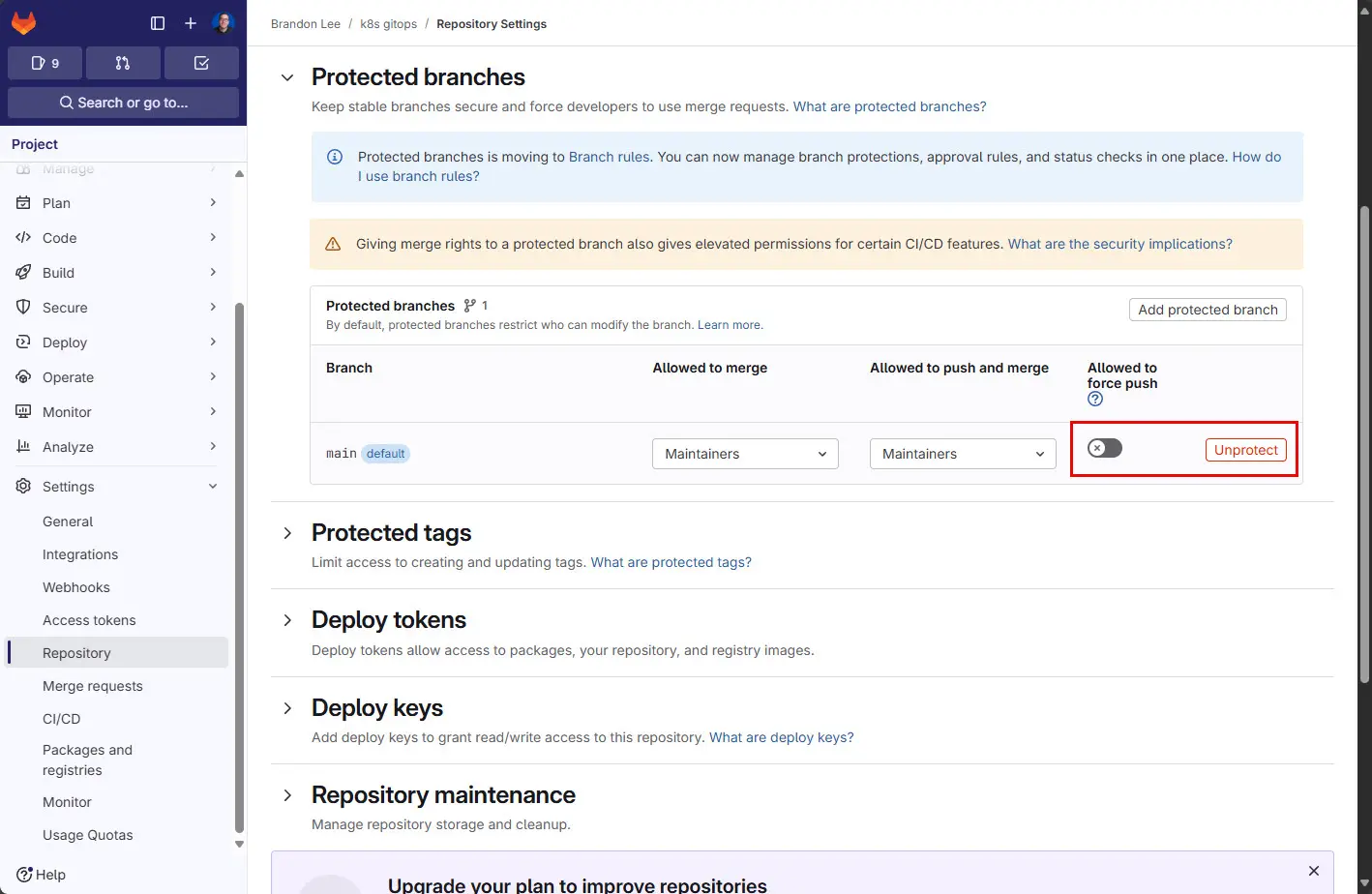 Step 2: Unprotect the repo