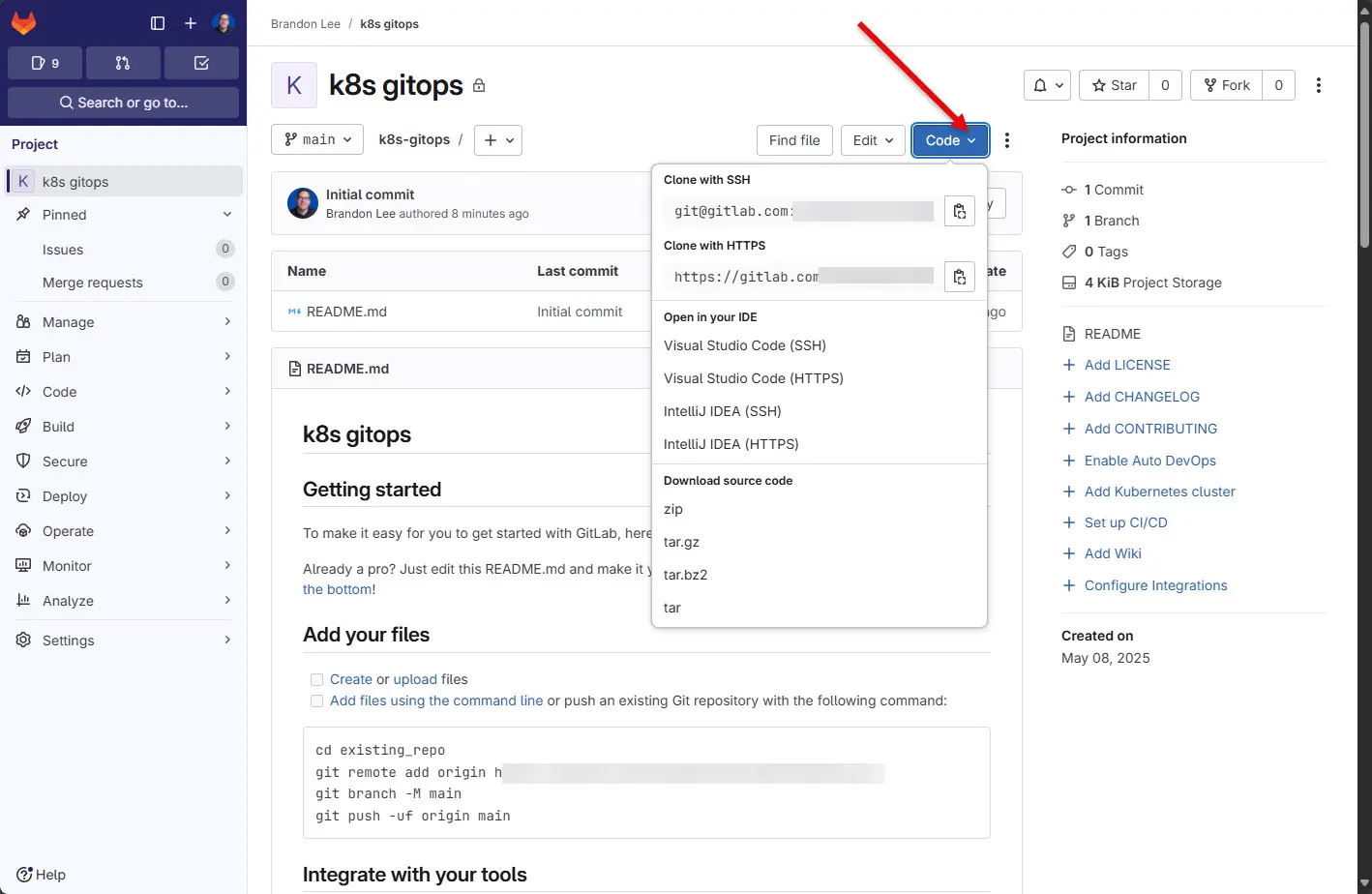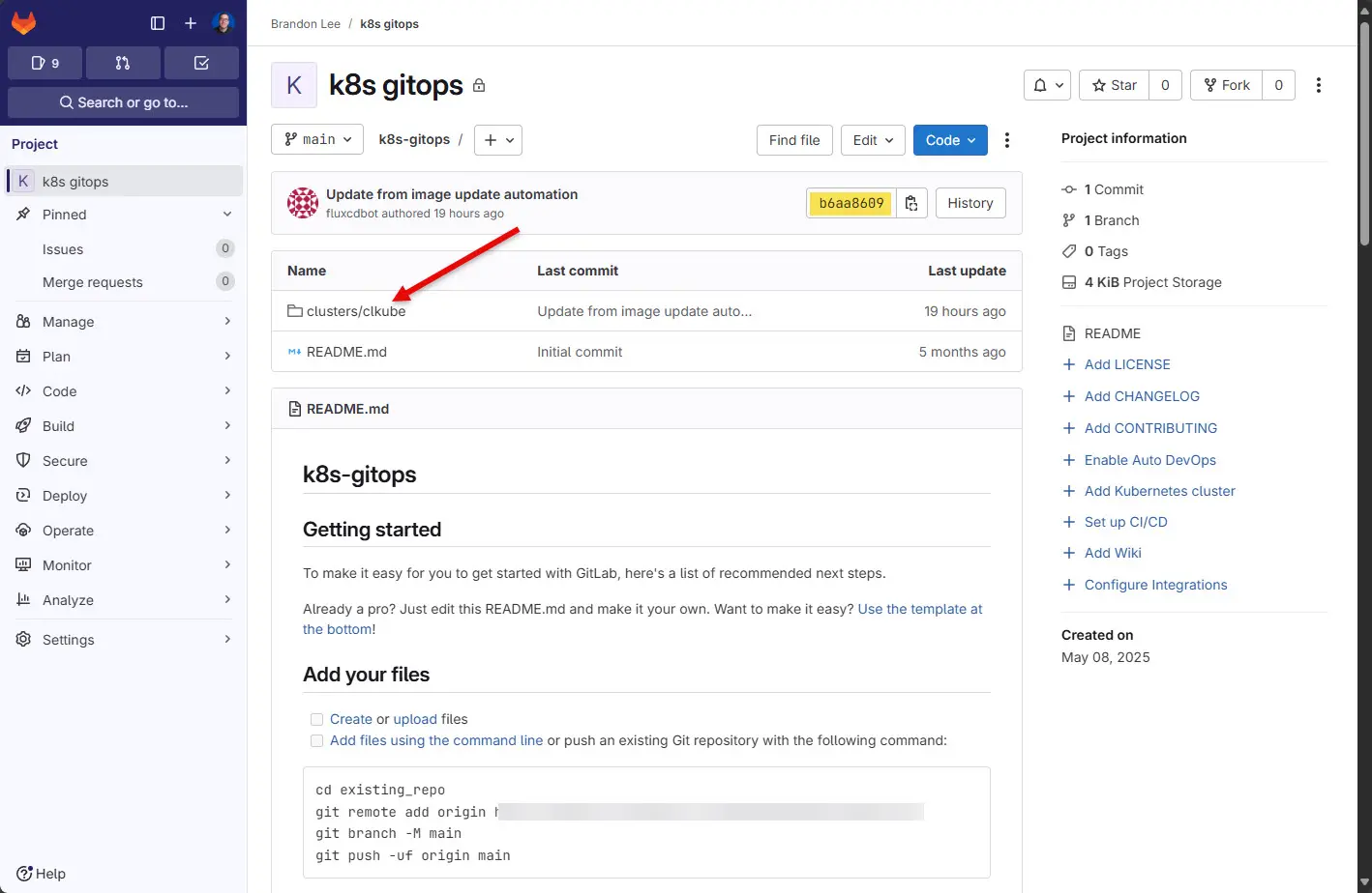 - Navigate to your new GitLab Cloud repository.