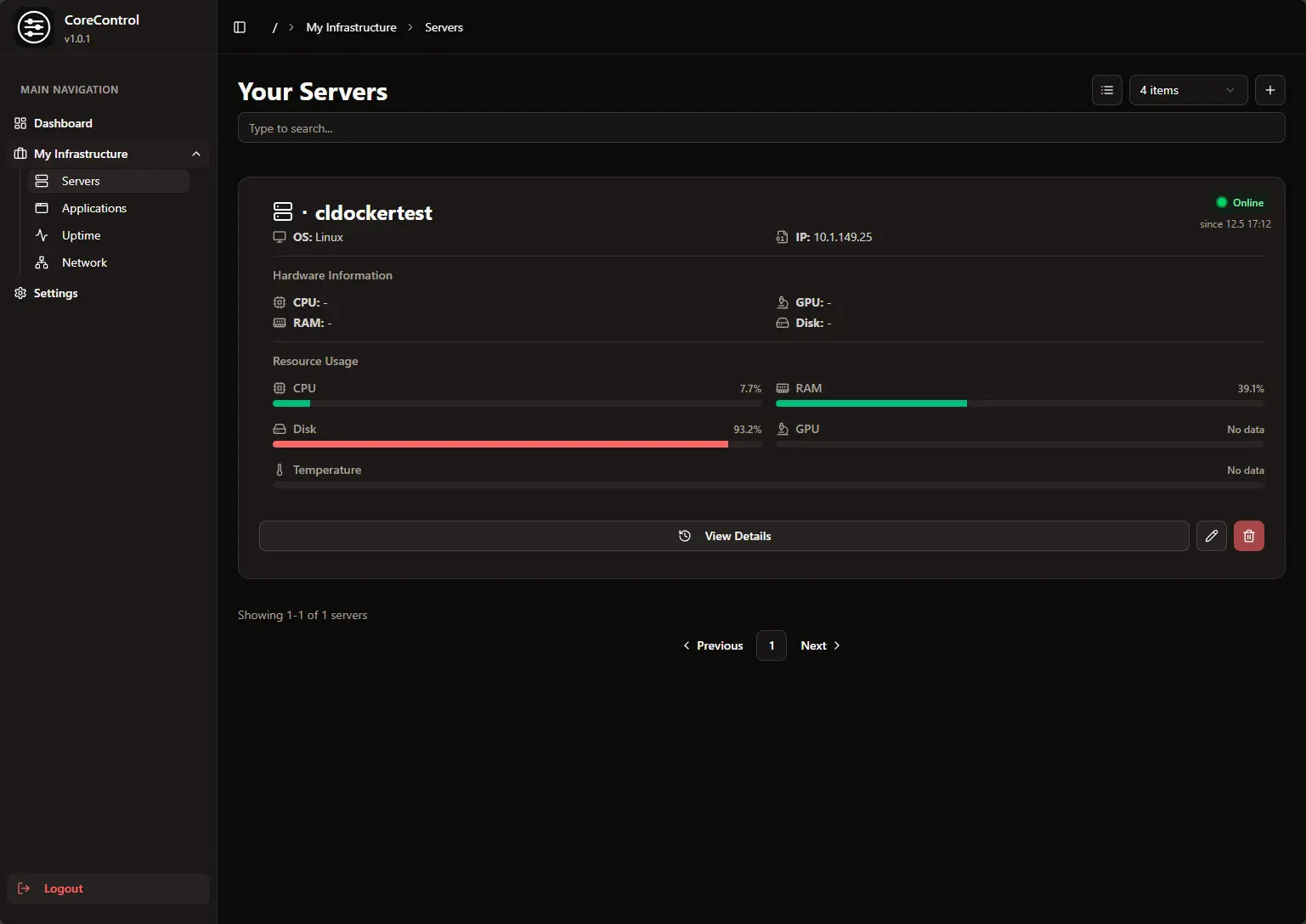 View the official GitHub page here: crocofied/CoreControl: Dashboard to manage your entire server infrastructure.