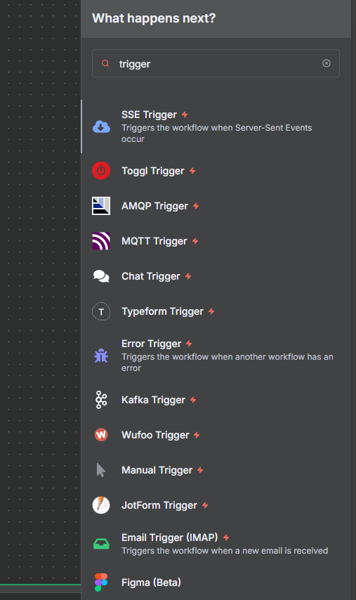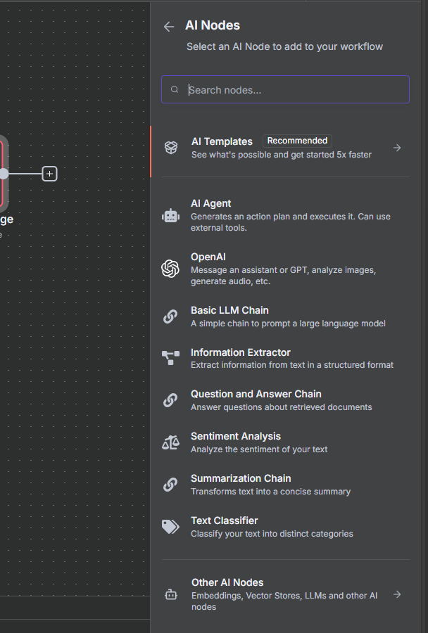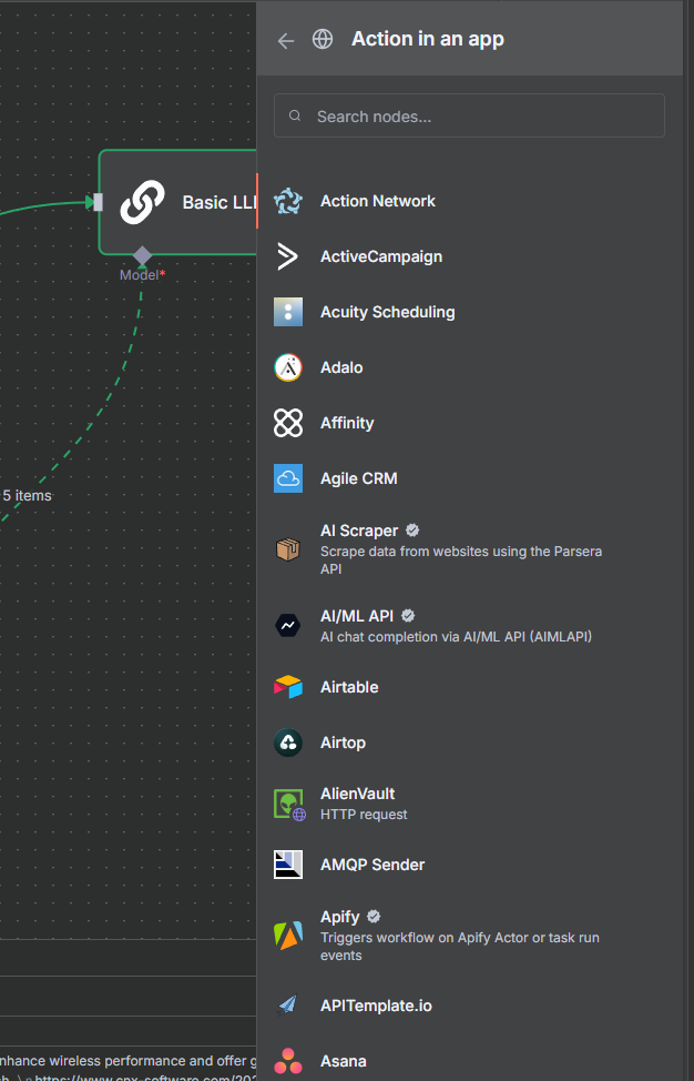 I think by far one of the most powerful capabilities of n8n is the app integrations that it has out of the box. When you create a workflow, you can see these by opening the nodes panel. Then