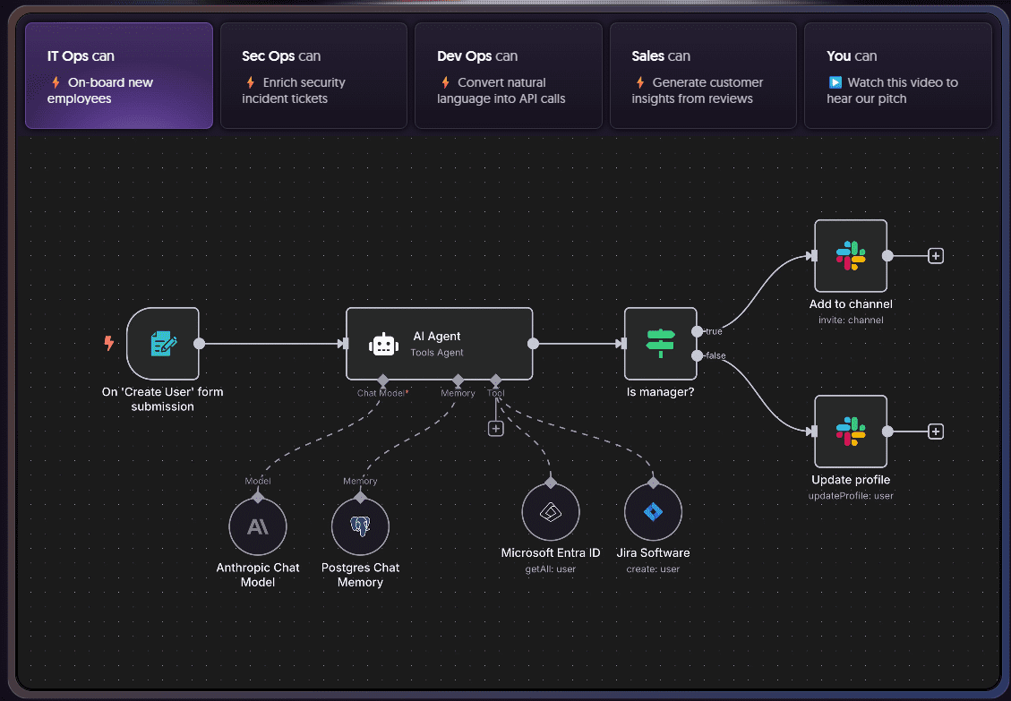 N8N is a self-hosted, open-source workflow automation tool that lets you visually connect and orchestrate over 200 services. The services you can use range from HTTP endpoints and SSH to Slack, Prometheus, and GitLab.