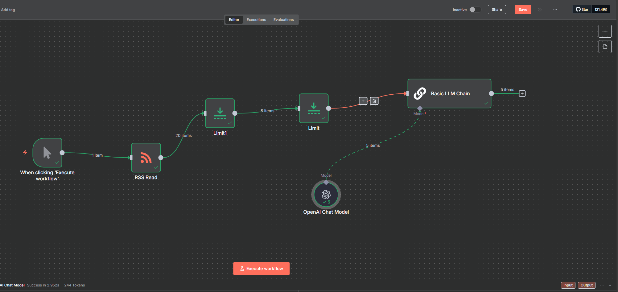 One of the totally cool things you can do with n8n if you run freshrss or other rss tools is pull a list of your recent feeds and then have chatgpt summarize these for you for quick digestion or posting elsewhere. Very cool!