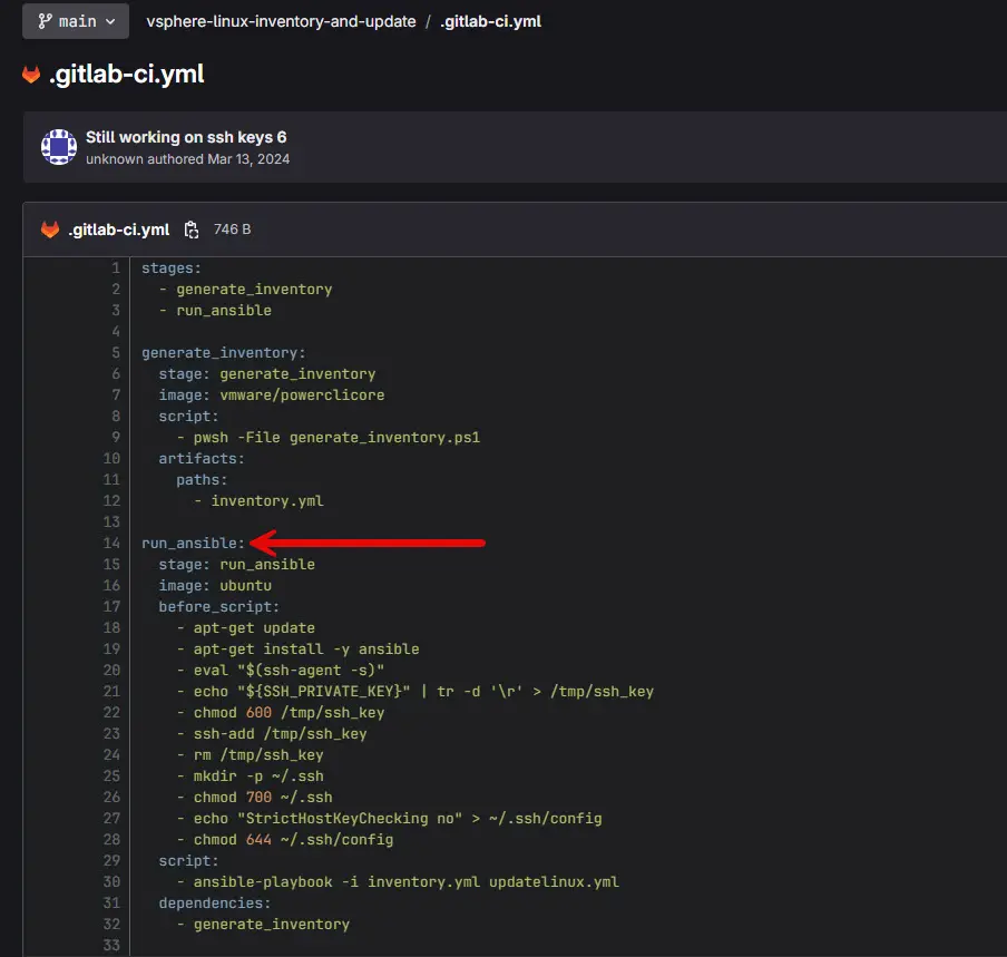 - Create a gitlab-ci.yml file that calls your Ansible script and allows you to run these on a schedule