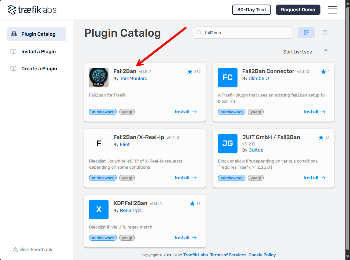 Fail2Ban is probably a service that you are already familiar with to implement brute-force protection. With the Fail2Ban Traefik plugin, you get this functionality right in your reverse proxy layer. I like the idea of my proxy stopping this request rather than it making it all the way to the backend service to detect and have to deal with a failed login or suspicious activity.