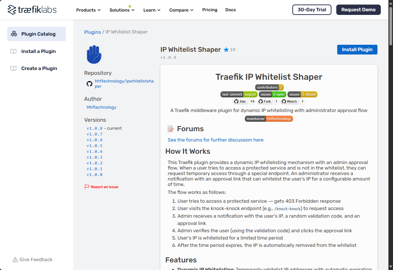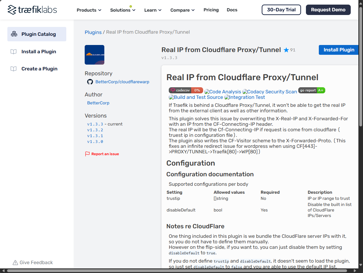 Plugins by the community can be old or outdated and may not even function correctly. What I like to do is look at the official GitHub site for the Traefik plugin and see how much activity it has and when it was last updated. This is a good indicator of the developer keeping pace with things and that it may be a stable plugin to use.