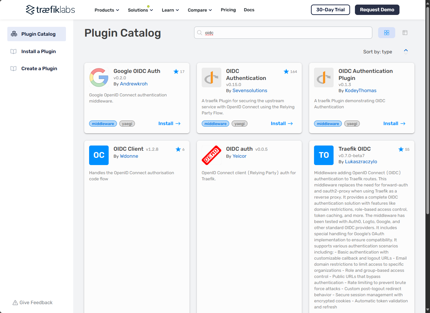 Below, on the Traefik plugins site, just doing a search for “oidc”.