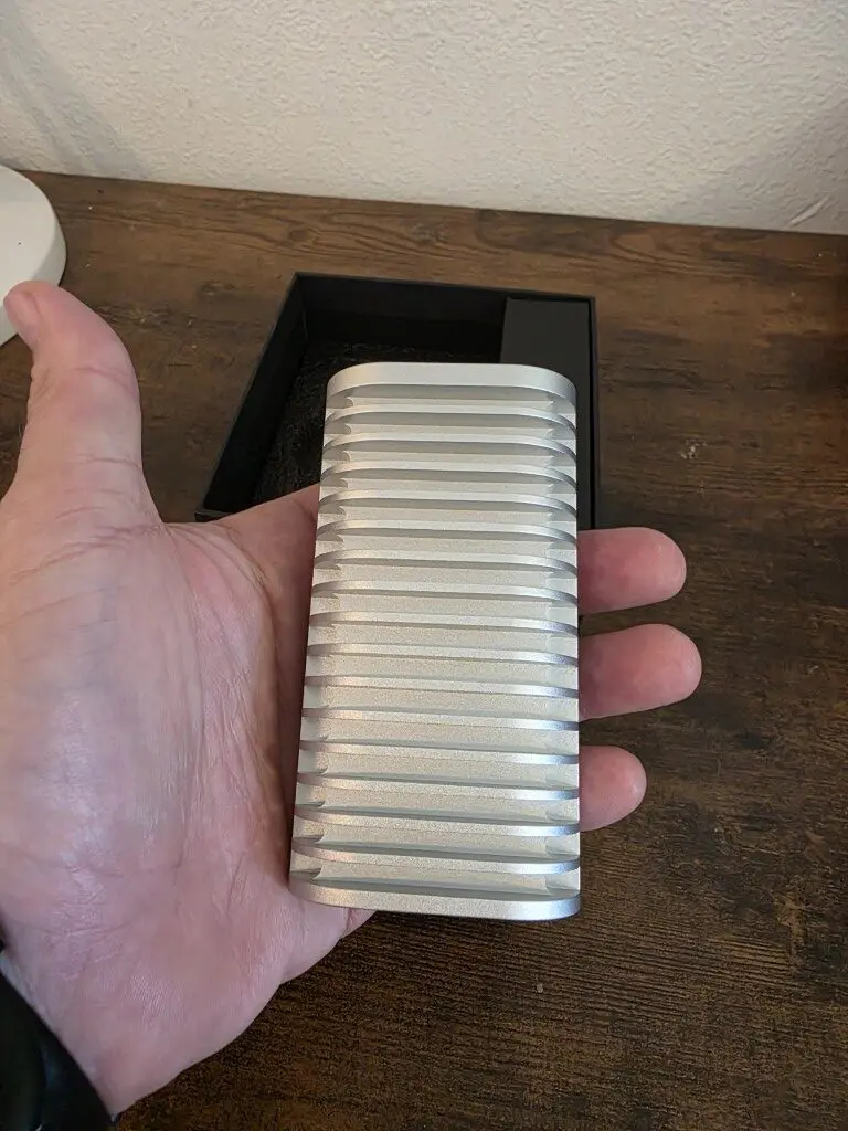 I think the design of this little portable SSD unit is very cool. The housing is made from aerospace-grade aluminum that is CNC machined. I really like the fact this little USB4 device is not enclosed in flimsy plastic like I have seen in others. This chassis feels dense, rugged and is definitely something that you know will protect the drive that is housed inside.
