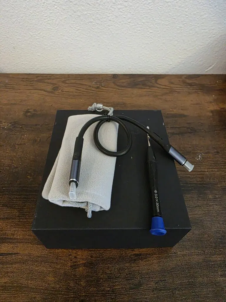 In case you are wondering what it comes with. Below is a view of the “goodie bag” compartment in the packaging. You get a nice cloth bag to store the unit as well as a screwdriver for removing the screw to gain entry to install your NVMe drive, and a high quality (but short) USB-C cable that is rated at USB-4 speeds.
