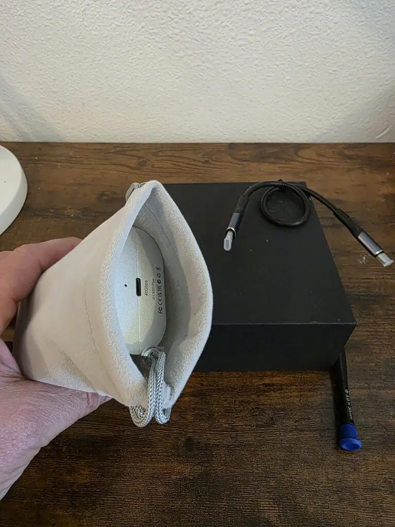 After putting the Terramaster D1 SSD Plus in the cloth bag.