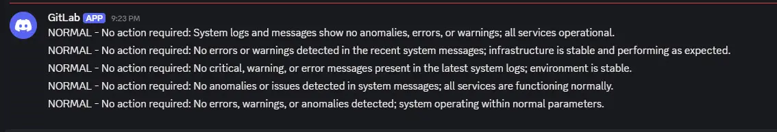 - AI Agent processes the messages and looks for anything other than “Normal”, so like Warning, or Error