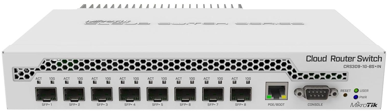 Take for instance a great switch for 10 GbE in the home lab. The Mikrotik CRS309-1G-8S+IN provides 8 SFP+ ports along with a single 1 GbE port for around $239.