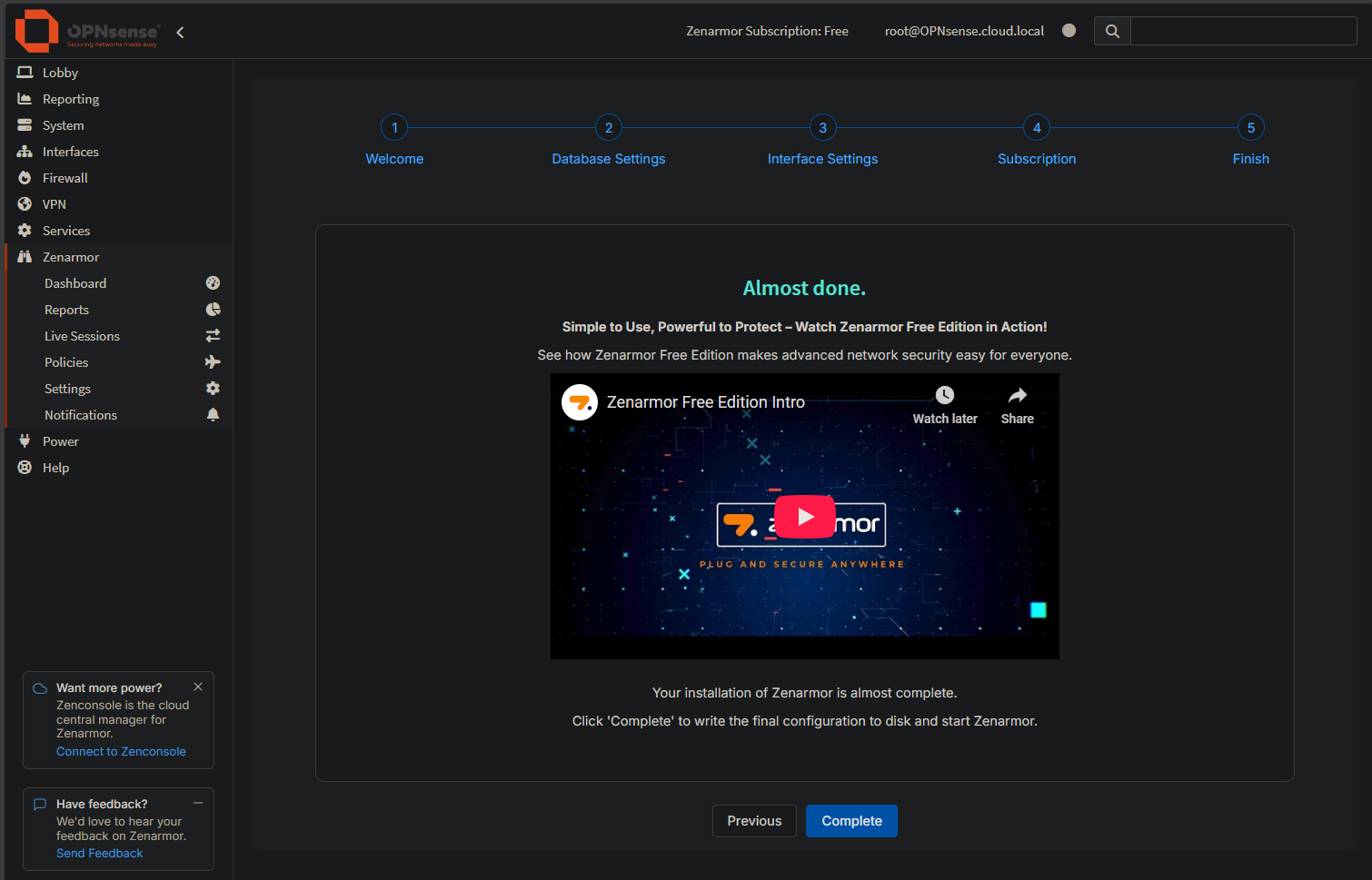 Finally, we complete the installation of Zenarmor. Click Complete.