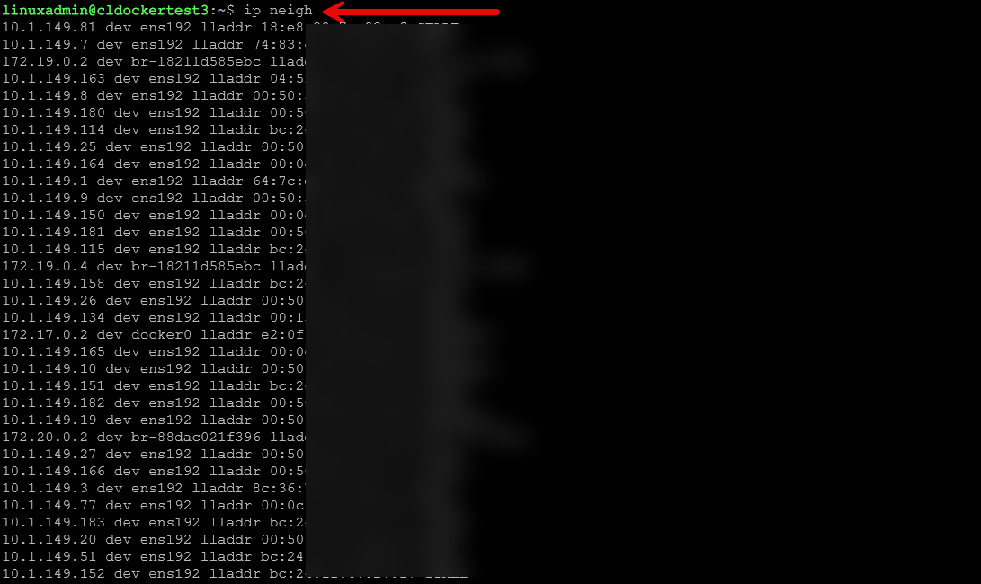 The ip neigh command is a really good one to see your neighbors found by ARP requests. This helps track down ARP issues, gateway problems, or machines that are inconsistent or flaky in how they respond.