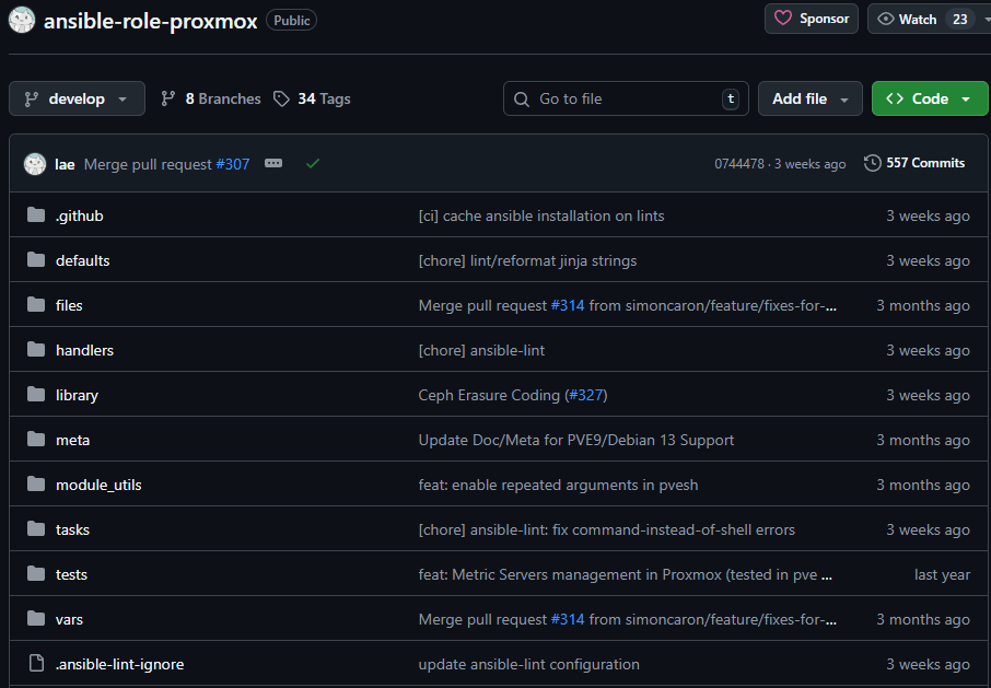Ansible is a great tool to use if you are deploying new Proxmox nodes or rebuilding clusters as is always the case in the home lab for me. With a module called pve-ansible ansible-role-proxmox you can fully automate the install and config of Proxmox VE on Debian hosts.