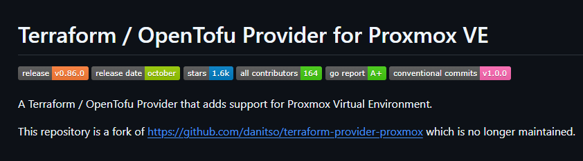 The bpg Proxmox terraform module is the de facto standard Terraform provider for Proxmox. Also, this is for OpenTofu as well if you are using this in yoru lab environment. Terraform is definitely the tool to use if you want to have immutable infrastructure in code to control your virtual machines, templates, and network configuration. You can also version control your IaC for Proxmox in Git and this way, you know you have consistent configurations.
