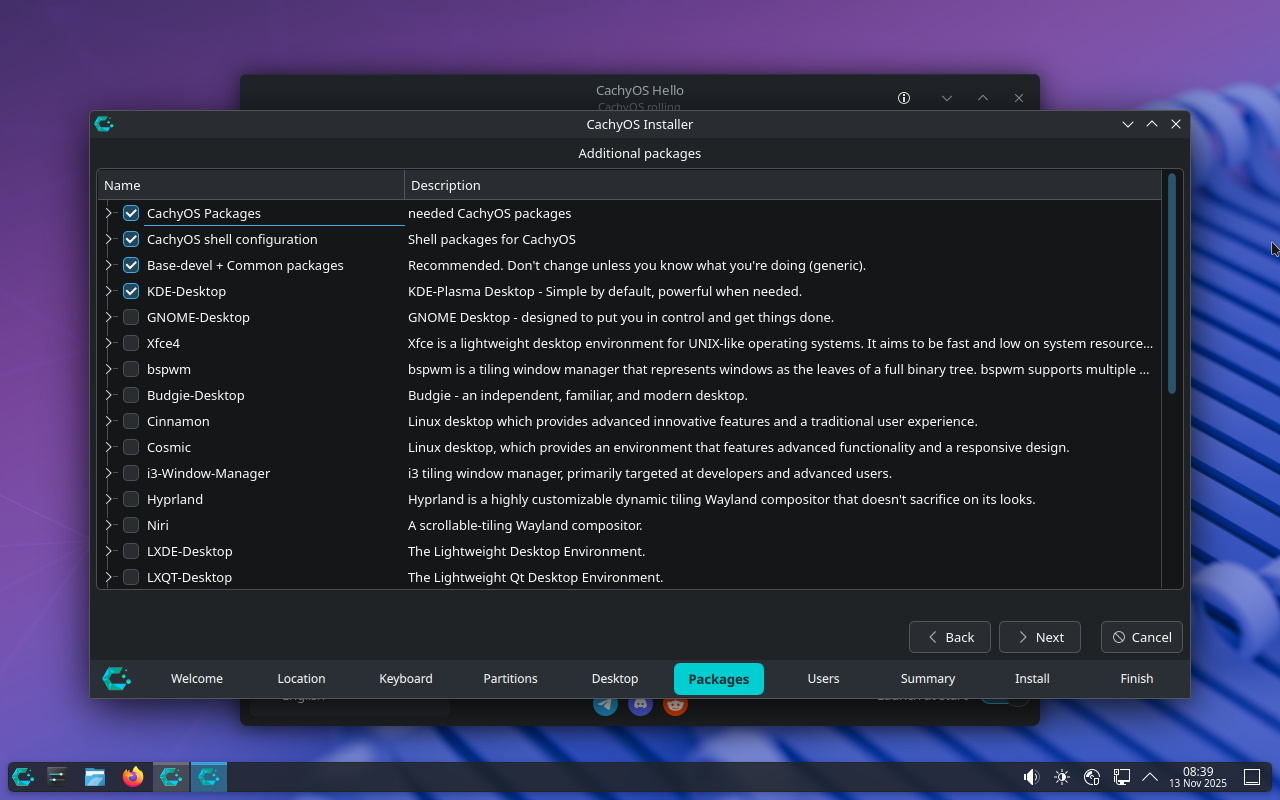 One of the really great features I think of CachyOS is the ability to choose from a wide range of desktop installations. Out of the box, you get to choose from many different ones, including: