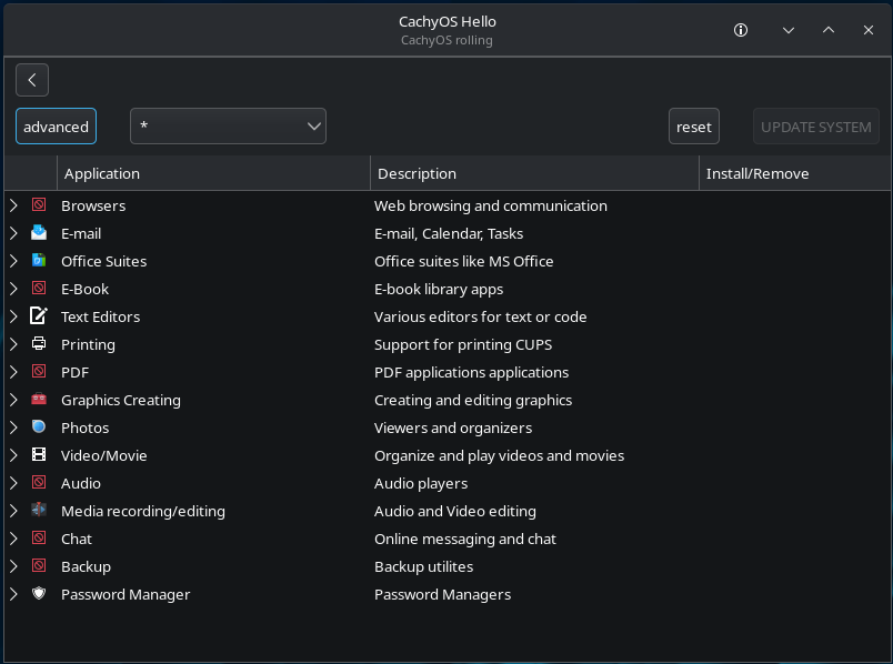 Cachy Linux also includes its own package manager GUI for those who prefer installing and updating through a graphical tool.