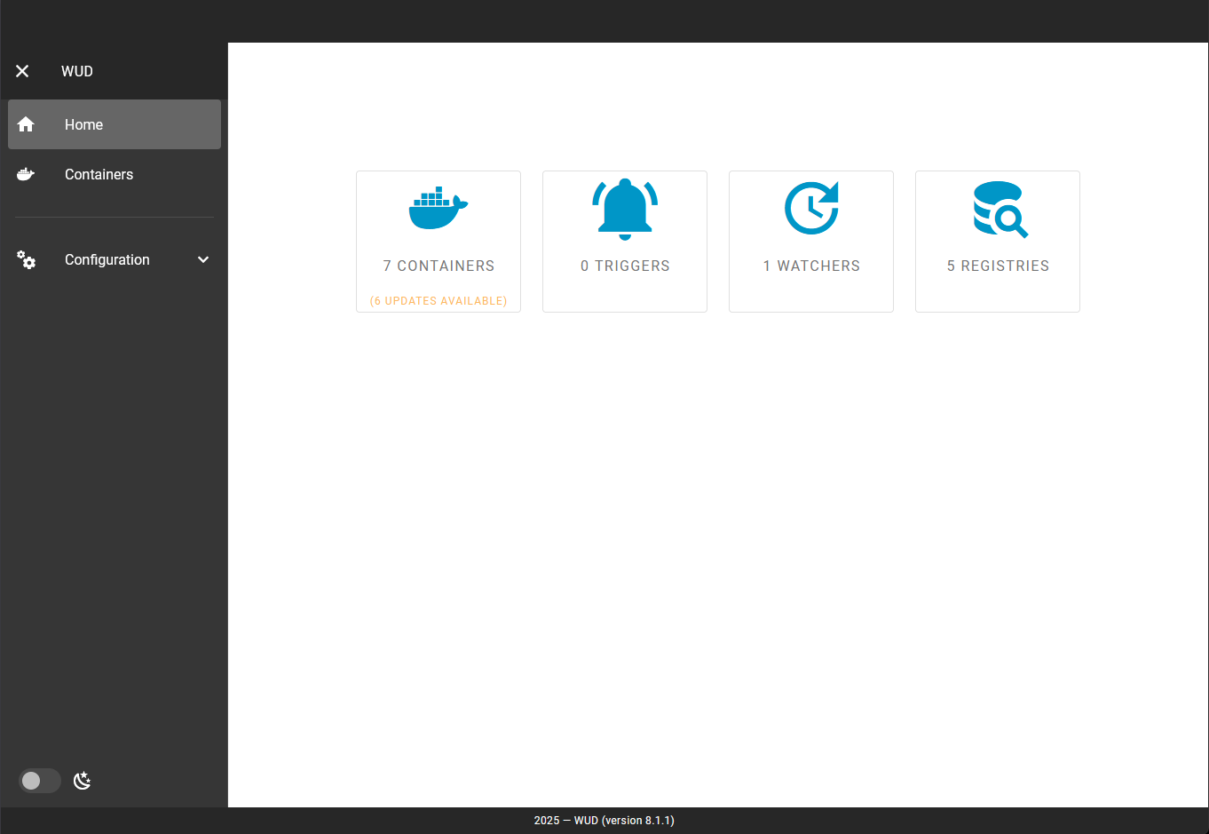 WUD reads the Docker socket, so it sees everything running on the host without needing additional configuration. This makes it incredibly easy to drop into existing stacks.