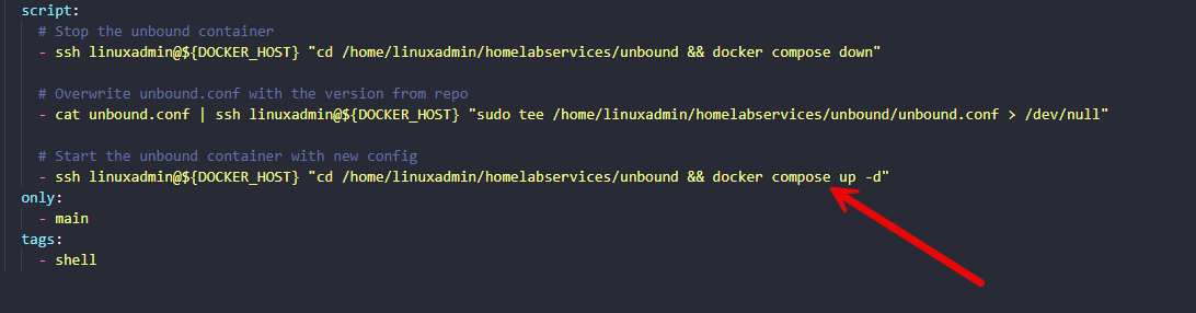 - ssh linuxadmin@${DOCKER_HOST} "cd /home/linuxadmin/homelabservices/unbound && docker compose up -d"