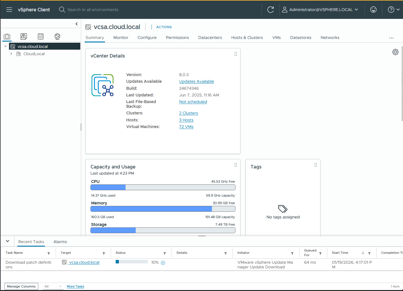 When you think also about updating your infrastructure, keeping your vSphere environment updated, involves updating your vCenter Server appliance and then all of your ESXi hosts in a very vanilla environment or VVF type footprint.