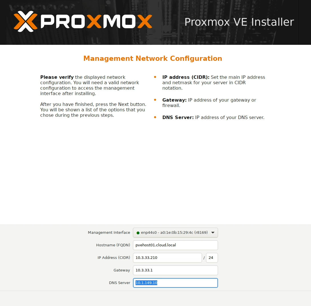 Below is a look at a few screenshots I took along the way for the configuration of the Proxmox cluster. Here I am installing Proxmox 9.1.x.