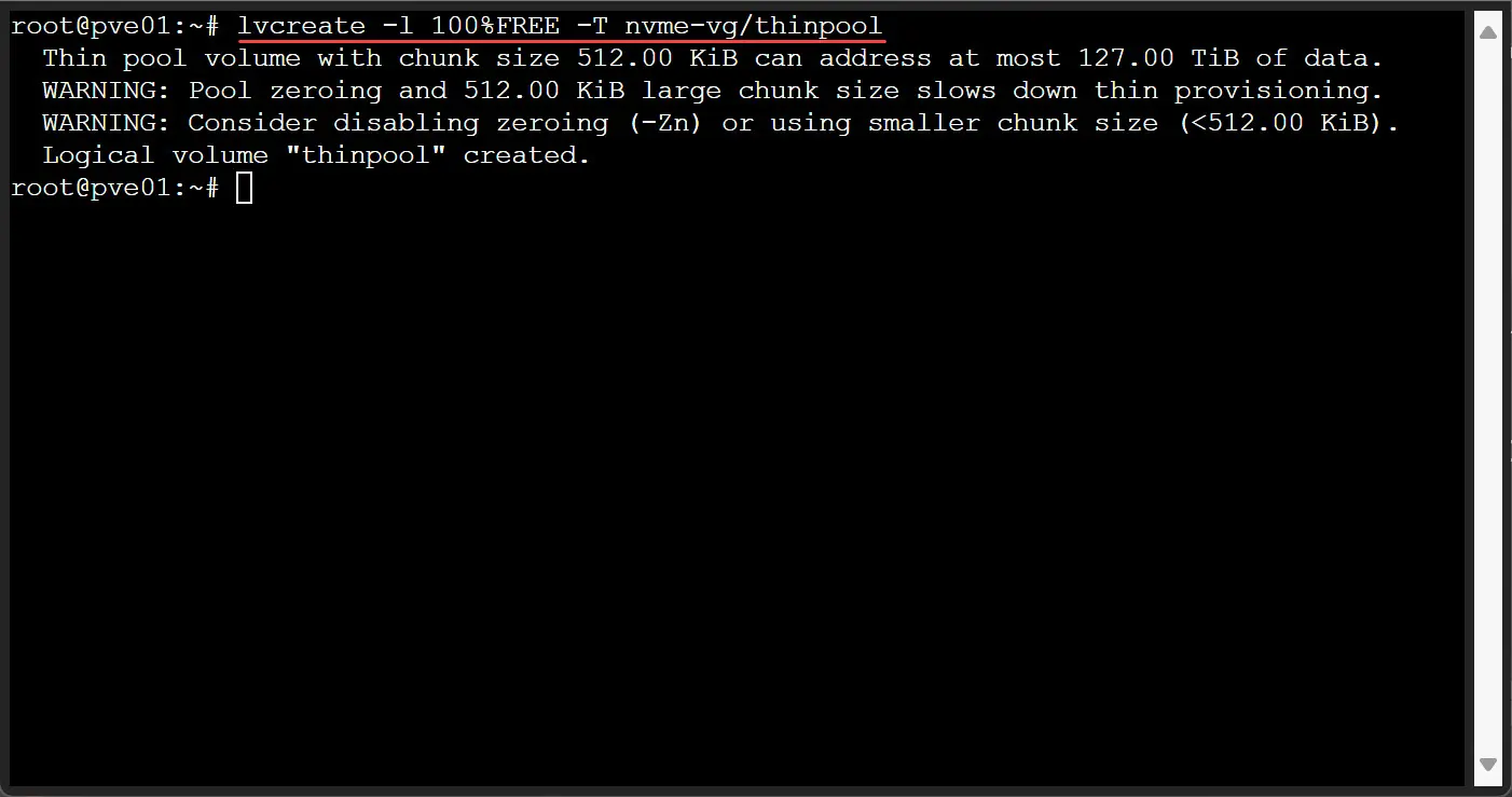I love using mini PCs with an extra NVMe slot that allows you to add an additional NVMe drive that you can use for dedicated VM storage. Also, make sure you create a thin pool storage on this extra NVMe drive. Thin provisioning allows you to overprovision the storage and really get more out of your storage when it comes to expensive NVMe storage.