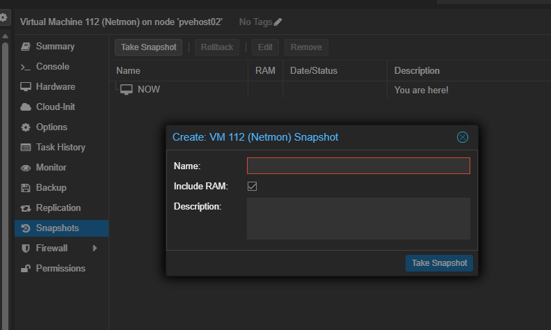 I know snapshots were one of the first magical things that got me hooked on virtualization. They give you a super easy way to click a button and create a roll back point. If something breaks after you have made the snapshot, you can just roll back to the snapshot. This gives you a sense of confidence and a safety net.