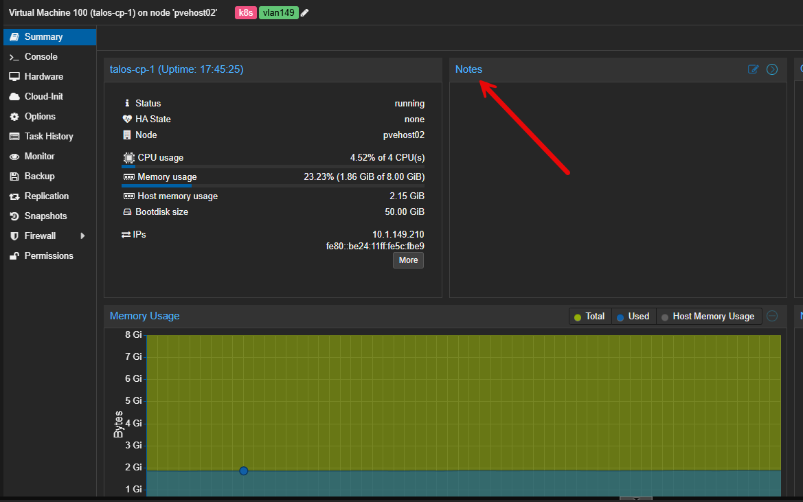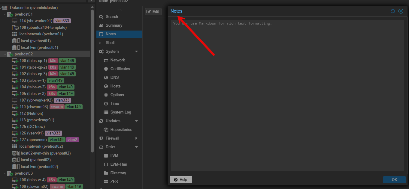 Below is the notes box on a virtual machine running in Proxmox. These also support rich formatting.