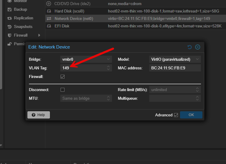 Instead of creating separate bridges for each VLAN, with Proxmox you can simply enable VLANs directly on each virtual machine network interface. There are some advantages I think to creating VLAN aware bridges in some cases, but the point is, you don’t have to.