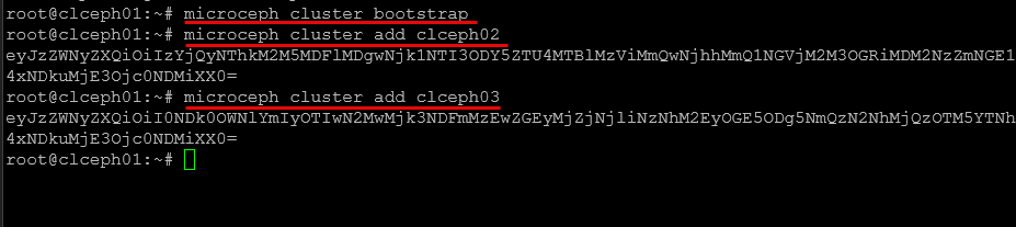 Bootstrapping the cluster and adding nodes to the microceph cluster.