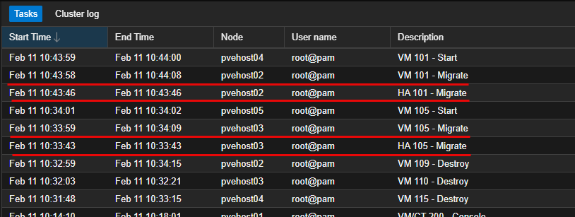 Below you can see migrations that were orchestrated by PegaProx: