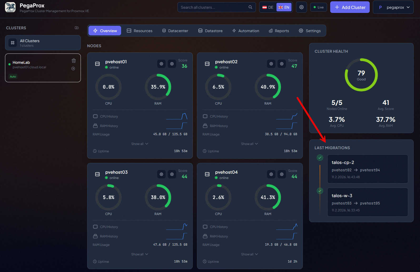 Not only does it allow you to add multiple clusters to the mix, it also has built-in DRS functionality as it has natively included the Proxmox scheduling project called ProxLB. For so long many VMware enthusiasts have longed for an equivalent to add to Proxmox to get similar functionality. Well, I think PegaProx provides that. in my testing, it actually does a really good job of moving VMs around that need to be moved to keep things balanced out.