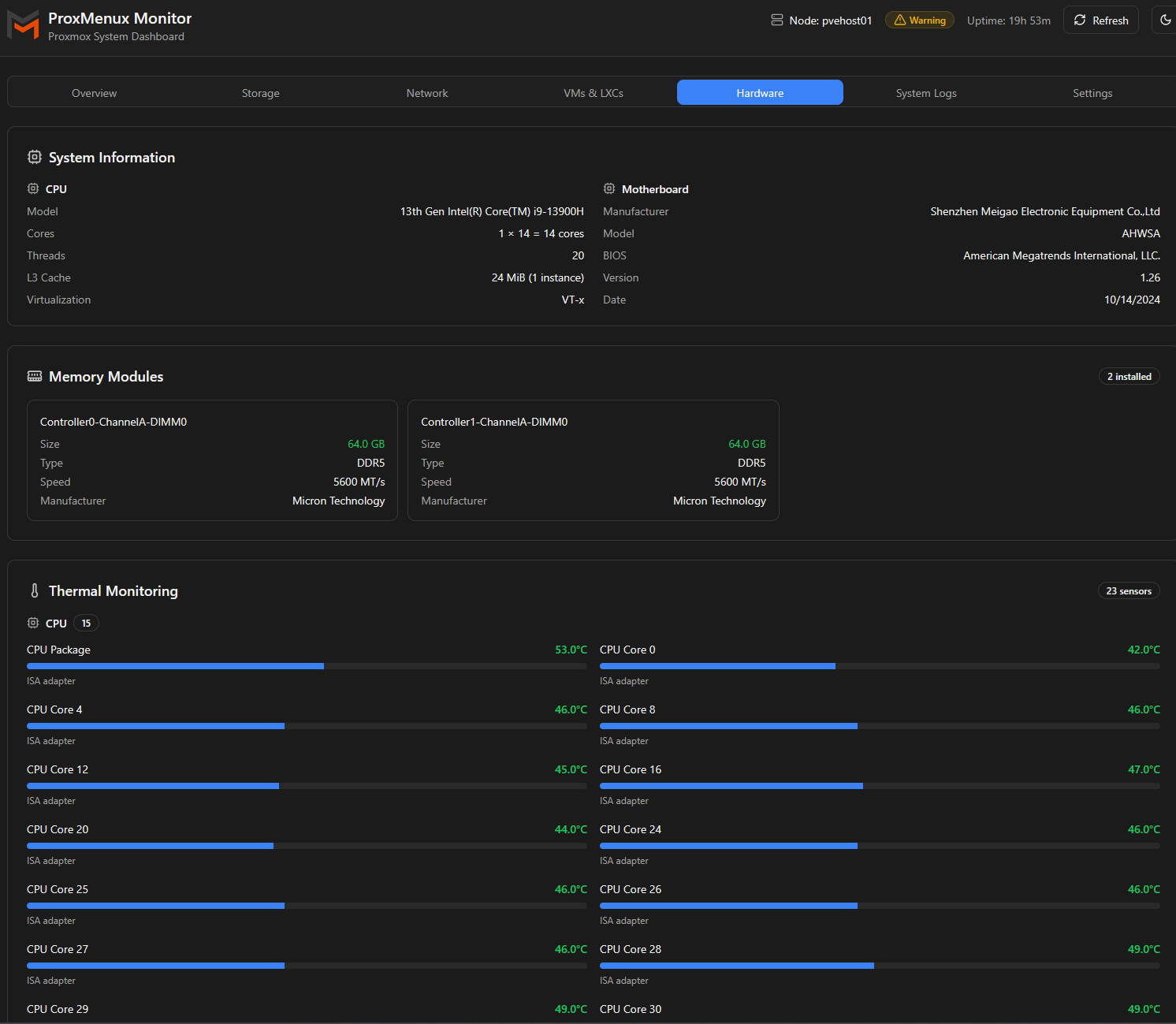 Also, now, ProxMenux has an additional monitoring feature that you can install that provides its own native monitoring solution. I find it to be one of the best hardware monitoring tools that you can use for Proxmox. It doesn’t stop at hardware, also monitors VMs and LXCs, but the hardware monitoring is just really really good. This is being actively developed as well so look for new features to be added with each new release.