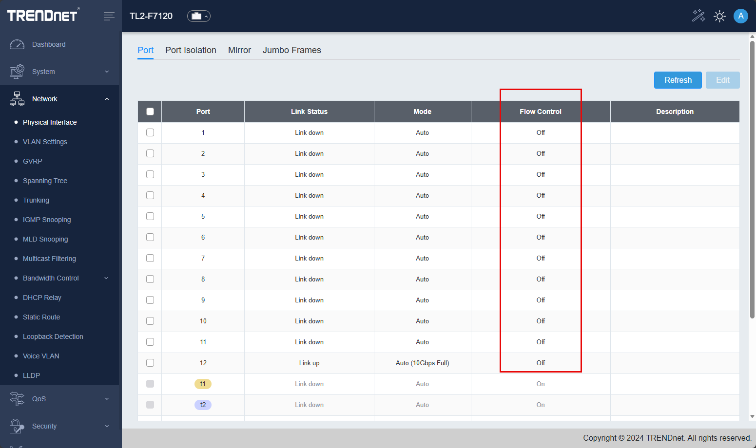 Another setting that you will likely want to tweak and implement a change is flow control. Most best practice guidance will have you turn off flow control when it comes to network switches that back storage solutions for server clusters, virtualization cluster, software defined storage, etc.