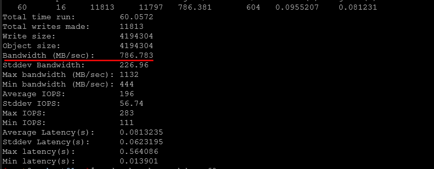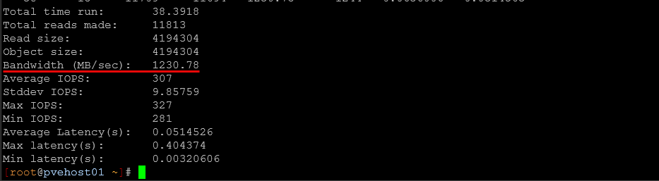 rados bench -p 19 write –no-cleanup && rados bench -p 19 seq && rados cleanup -p